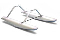 全備重量2800g程の機体に取り付けられる完成フロートです。芯材にスチロールを使用していますので、浸水の心配もありません。ジュラ支柱がセットされていますので簡単な加工でいろんな機体に取り付けることが可能です。