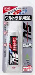 ボンド ウルトラ多用途SU (25ml)です。バルサ機の製作はもちろんのことEPP機、デプロン機、発泡系の機体などほとんどの機体で使えるオールマイティで強力な接着材です。 衝撃にも強く速乾性で作業効率も上がります。 クリアー(透明タイプ)なので乾燥後も目立ちません。 手ごろな25mlサイズでツールケースに入れておくにも便利です。
