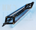 テトラのホールガイドです。棒ヒンジを挿入するための穴を加工するツールです。ガイドで主翼を挟み込みセンター位置を決めた後に、ガイド穴に沿ってドリルを入れて穴を加工します。 ガイドの両端が自由に動く構造になっているため、翼端に行くほど薄くなっているようなテーパーがかかった主翼でもセンター位置を決めることができます。 もちろん上下面にテーパーがかかっていない平行な主翼や板ものの尾翼に利用可能です。