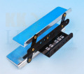 テトラのホールガイドです。機体製作時、棒ヒンジや1サーボ式エルロン用のロッド、コの字型に入れるエレベーター用のロッドなど、中心線に垂直な穴を開ける際に使います。 平行四辺形のガイドを当てて中心を決めた後、2つのホールにドリルを通して穴を開けることで垂直な穴を加工することができます。